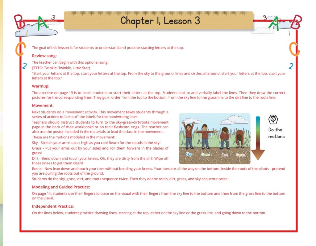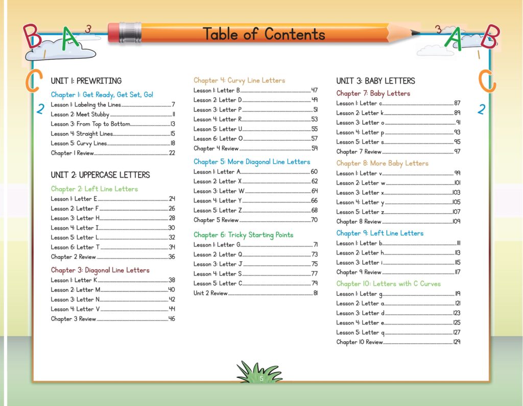 Letters are introduced using a multisensory approach with clear, colorful visuals and plenty of independent practice.